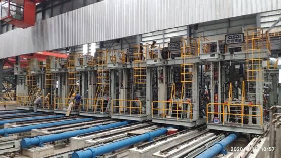 2020年9月4日19時(shí)36分,由中冶賽迪負(fù)責(zé)核心軋機(jī)工藝、裝備及控制技術(shù)的國(guó)產(chǎn)首條輕軌萬(wàn)能連軋生產(chǎn)線在河北永洋特鋼公司投產(chǎn),第一根鋼即熱試成功,經(jīng)檢驗(yàn)產(chǎn)品通條斷面尺寸和表面質(zhì)量全部合格,軋機(jī)性能指標(biāo)和全自動(dòng)軋鋼表現(xiàn)穩(wěn)定,并于當(dāng)晚連續(xù)生產(chǎn)30根合格產(chǎn)品。