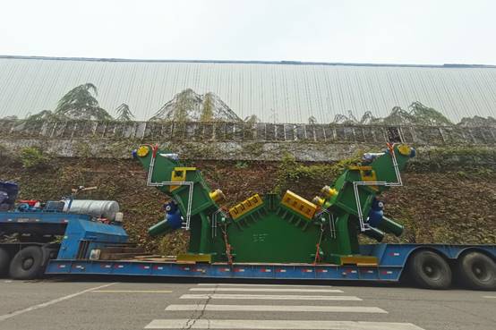 此外,為保證設備順利發運,在項目啟動之前,制造中心發運組就專門針對這兩件大型設備的運輸情況進行了初步運輸方案摸底,多家大件運輸公司同時參與。在正式運輸前,制造中心生產部提前做好了所有發運準備工作,如運輸選車、制作工裝、勘路、制定排障方案、申請超限運輸證、優化運輸路線等,終于在10月12日成功實現發運出廠,并將由專車護送前往湖南衡陽業主現場。