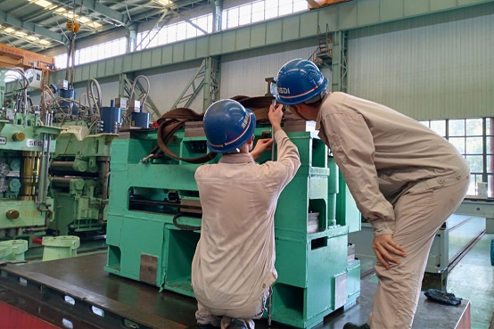 連晴高溫又逢限電政策,無疑給公司“用電大戶”——金工車間帶來了巨大挑戰。面對大量的生產任務需要保質保量按期完成,金工車間根據限電時段安排調整員工作息時間,將限電時間外排滿班次,人員改為早晨03:00-10:00與20:00-03:00上班。盡管是晚上工作,但走進車間依然能感受到撲面而來的熱浪,映入眼簾的是一張張汗如雨下的面孔。他們為了確保永豐鋼鐵、蕪湖新興大棒、青鋼高線軋機備件等項目的生產進度,不顧汗水一次又一次的打濕衣襟,堅守一線崗位,找正裝夾、換刀片、編程、做清潔,一絲不茍做好手里的工作,用實干詮釋擔當與責任。