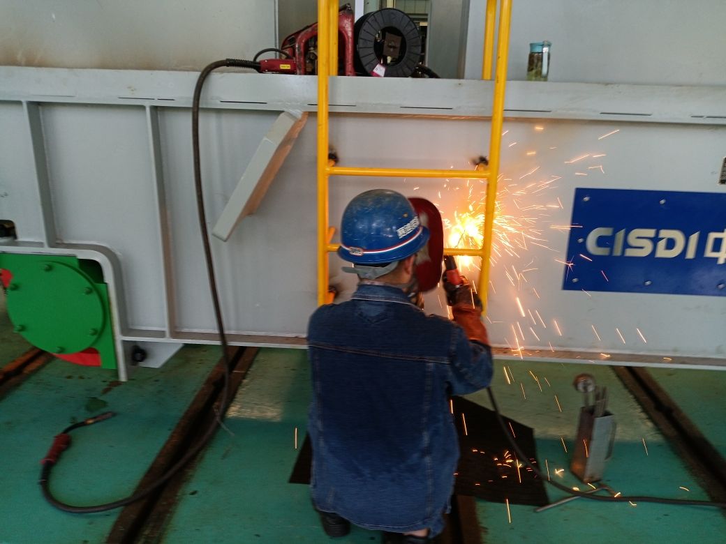 走進車間,一股股熱氣迎面襲來,現場氣溫高達50多度,工人們雖然已經汗流浹背,但工作熱情絲毫沒有降低,F場的焊工按照工藝焊接要求,施焊周邊不能用風扇等降溫設備,且必須穿厚實的焊接用牛仔服、戴著厚重的防塵面罩,經受著300多度的焊接高溫輻射。這樣的情況下,不到五分鐘,汗水就會浸濕厚厚的焊工服,高溫又把它烘干,如此反復。他們憑借著頑強的毅力與高溫作戰,一手面罩,一手焊槍,在電與火之間續寫著賽迪精神。