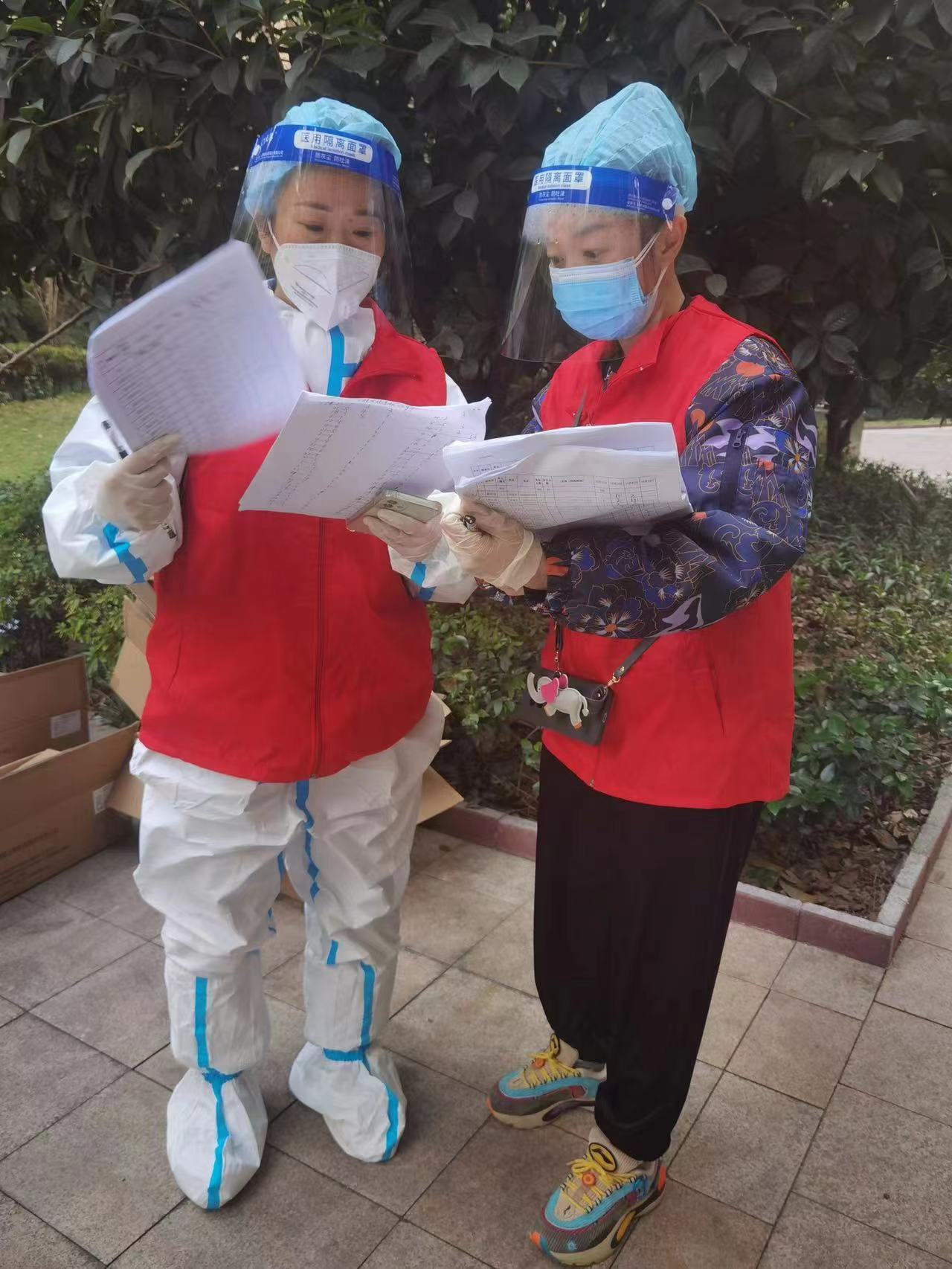 為了早日戰勝疫情,回歸正常生活,也為了實現與兒子的約定,文麗琴約上同樣是黨員的萬霞義無反顧地加入了志愿者隊伍中,利用工作之余的空閑時間進行志愿服務。從11月18日以來,兩人白天在小區核酸檢測點維持秩序、發放抗原檢測試劑,吃過晚飯還要到社區辦公室封裝抗原檢測試劑,有時候甚至會忙到夜里10點才能結束一天的志愿服務。每天悶在防護服下數個小時,原本不愛出汗的兩個人卻經常都是汗流浹背。