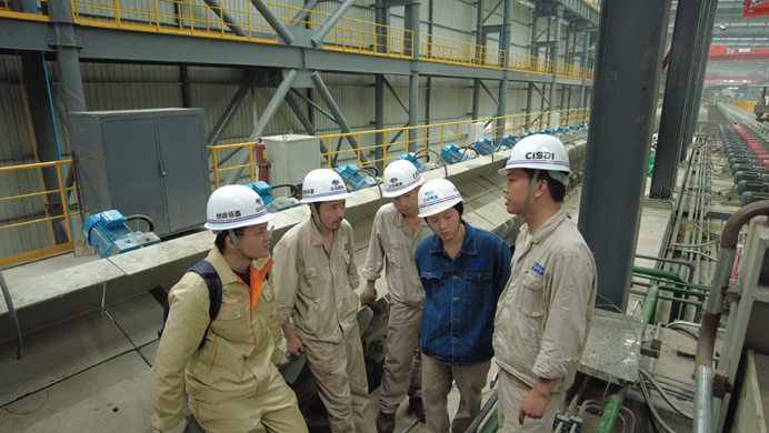 而同樣在現場不停奔走的還有產品設計研究院張程霖、周德洪、程江、張子念和軋鋼與裝備事業部夏棋、高陽等人。為做好技術指導,他們每天背著電腦在設備間來回穿梭,黨員張程霖說:“只有在現場,心才踏實!倍沁@樣的奉獻精神,因本次項目服務,耽誤了孩子轉學手續的辦理。預備黨員周德洪作為本條生產線的總設計師,更是事事靠前,既當技術指導又干鉗工安裝?v使他已算是公司頗有經驗的“老手”卻也隨時帶著筆記本,仔細收集各項數據,整理每項技術問題,為后續設計優化積累經驗。